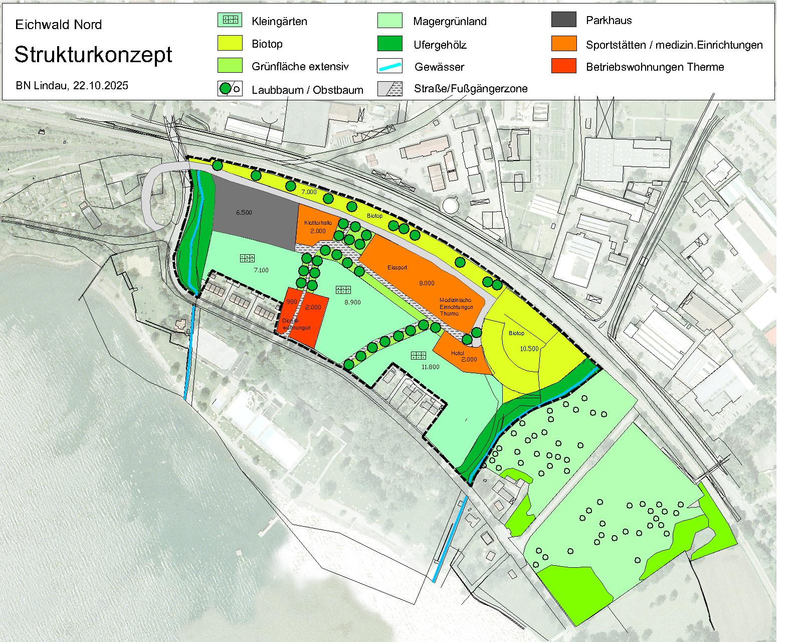 Der BN tritt dafür ein, die im Bodenseeuferbereich zwischen Eisenbahn und Flachwasserzone bestehenden natürlichen Strukturen und Arten zu erhalten und zu entwickeln. Maßgeblich ist dabei der Landschaftsplan der Stadt Lindau 2011 und der Freiflächengestaltungsplan 2030.