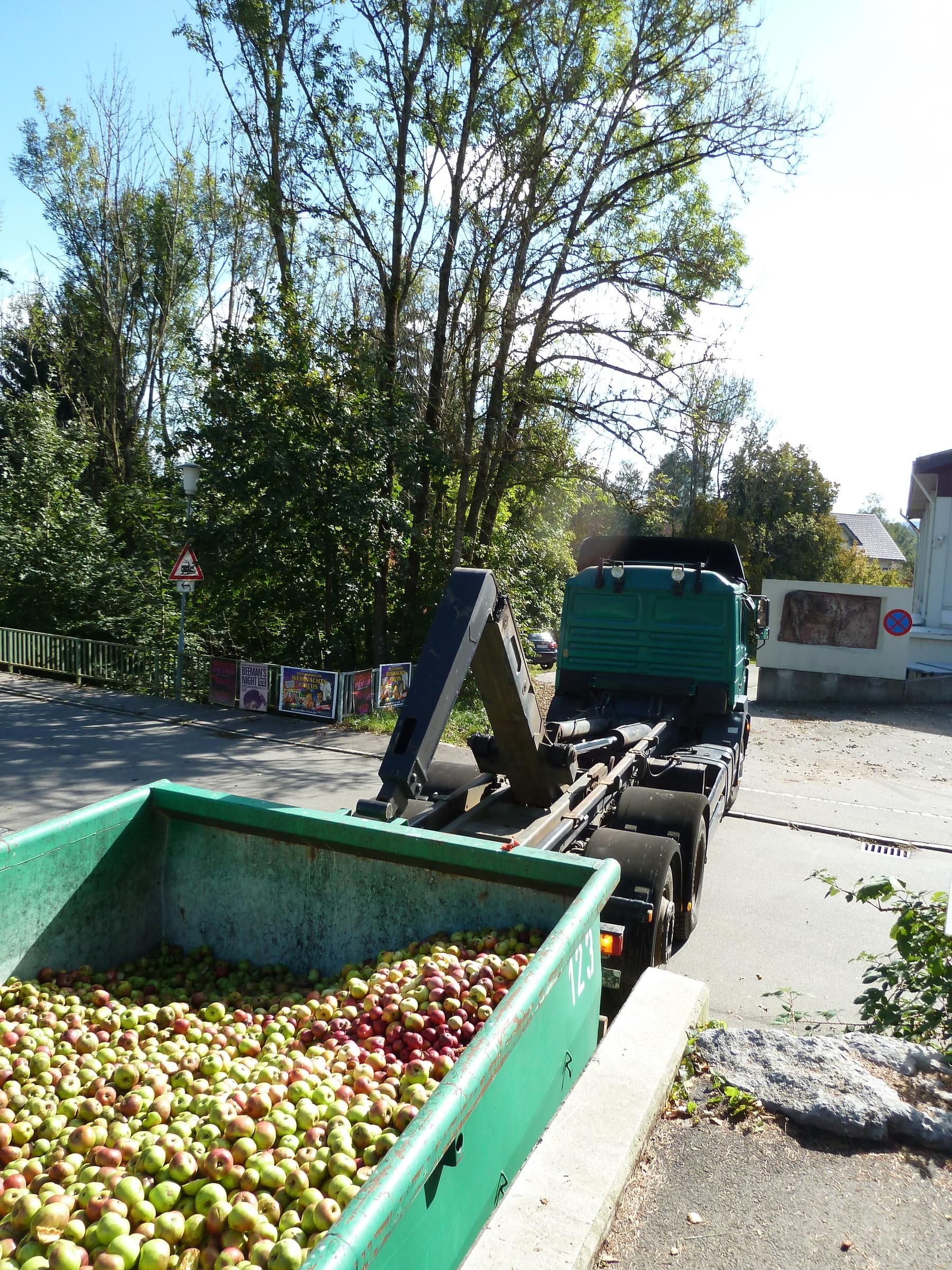 Seit 2003 organisiert der BN die Obstannahme für Streuobstäpfel, die dann von der Lindauer Fruchtsäfte GmbH in Lindau zum Streuobstsaft gepresst werden.
